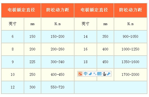 2、煉鋼電爐先用電極直徑時,請參考電極電流負(fù)荷。