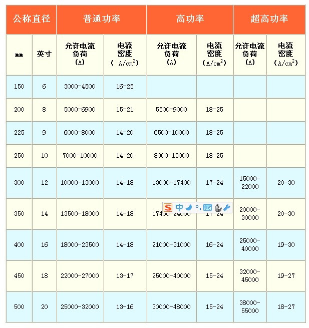 石墨電極允許的電流負(fù)荷: